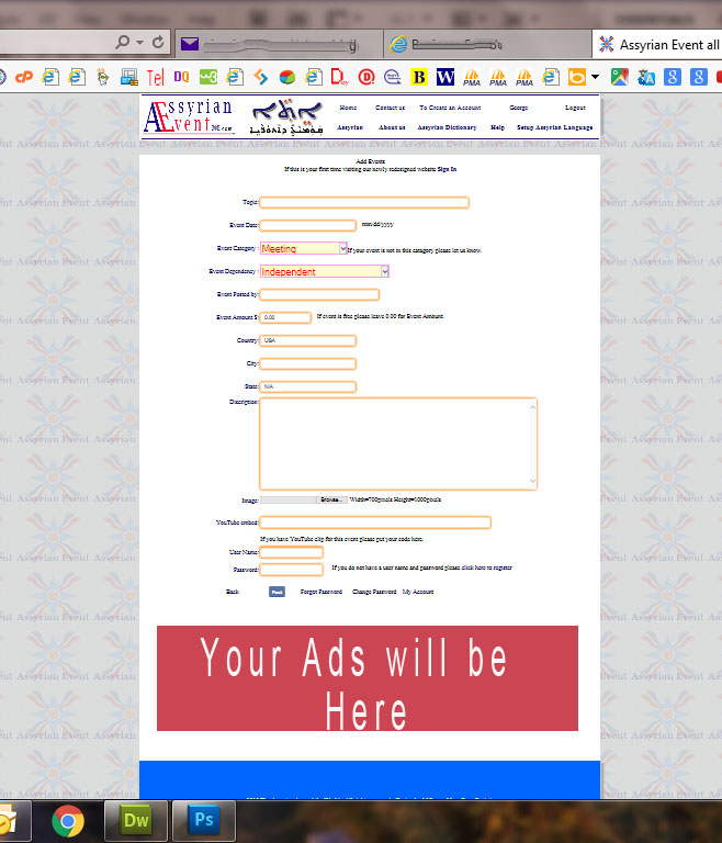 This site was created to promote Assyrian events world-wide. We have tried to make it very easy for users to add their events to the site. We welcome your suggestions/comments about how we can improve the website. Please send us your thoughts and comments.